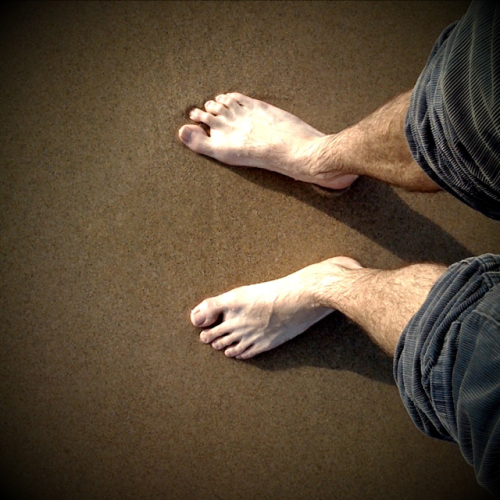 undertow's pulling away under a sky that is grey on sand that is grey by an